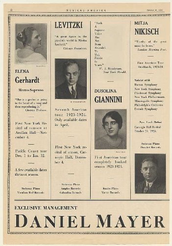 1923 Gerhardt Levitzki Giannini Nikisch Rubinstein Jacobsen Van Emden 2-Page Print Ad (Music Memorabilia) (54074) Feature